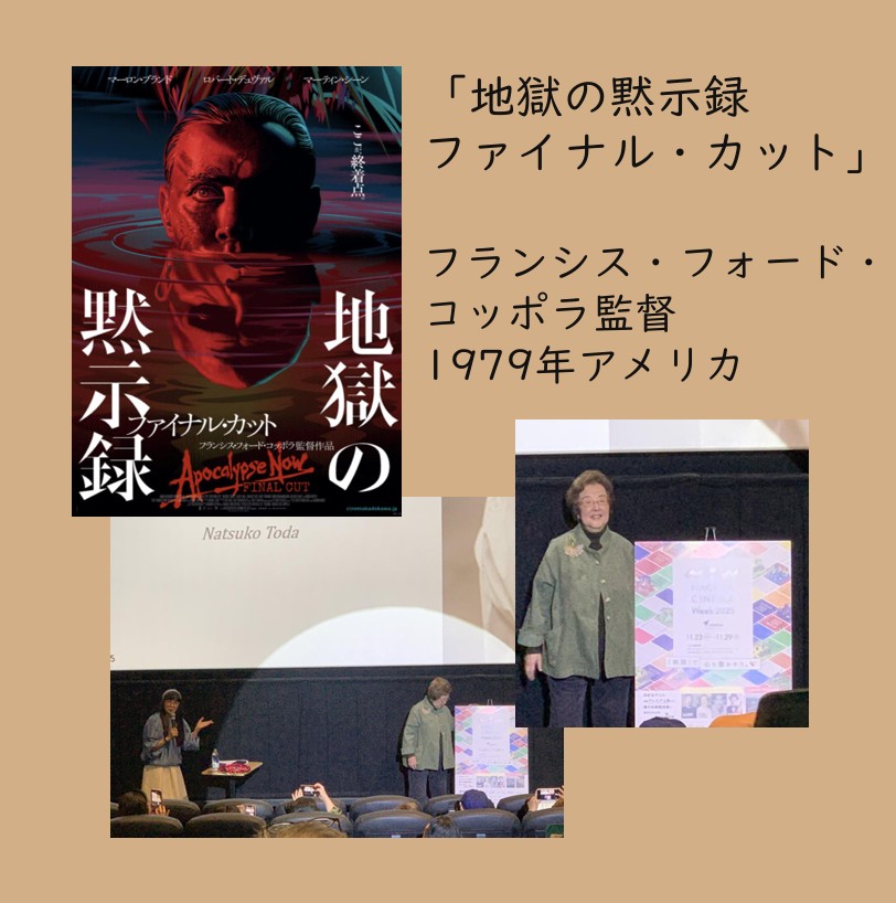 普段はやりとりすることもないのだけれど、月に一度だけ、主に映画のお話をするためにお会いするという、ちょっと特別な、大切なお友達がいる。その方からNAGOYA CINEMA Weekという映画祭のなかで「地獄の黙示録」の上映会があると教えてもらい、しかも戸田奈津子さんトーク付き!というので一寸の迷いもなく申込んで行ってきた。